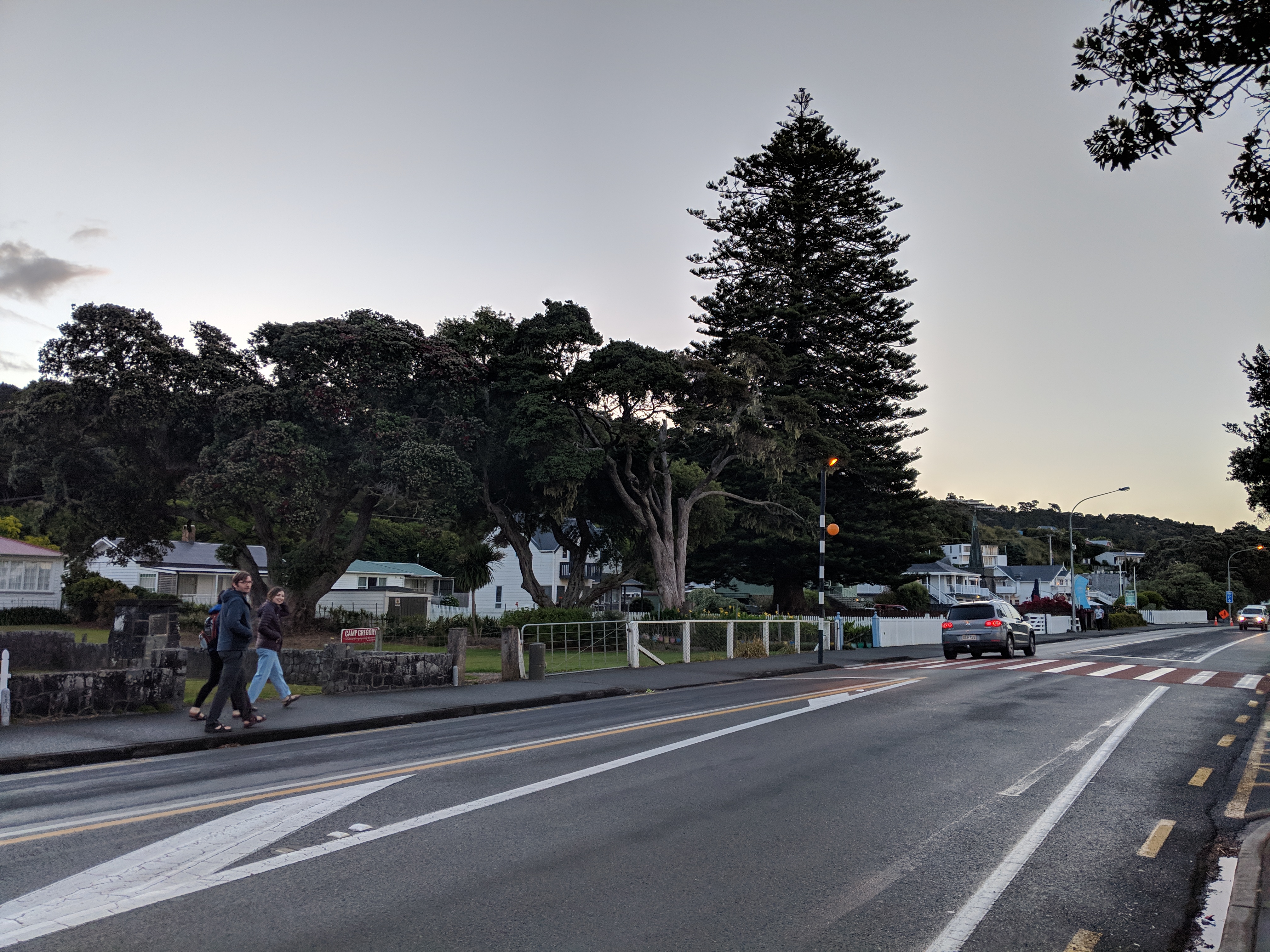 On Thursday we bounced each other out of bed early to board a bus north. Our group was headed to the Bay of Islands, a region on the shore of the Pacific Ocean. The landscape consisted of rolling green hills, pastures filled with cows or sheep (there are 30 million of them in New Zealand), and big, bushy trees interspersed with conifers and palms.