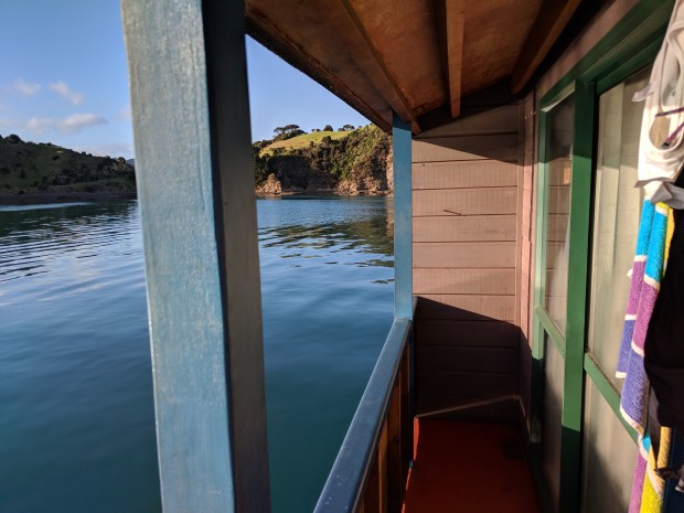 On Saturday, our group boarded a small inflatable speedboat that took us and our belongings to The Rock overnight cruise–a houseboat that was going to take around 40 people deeper into the Bay of Islands for the night.