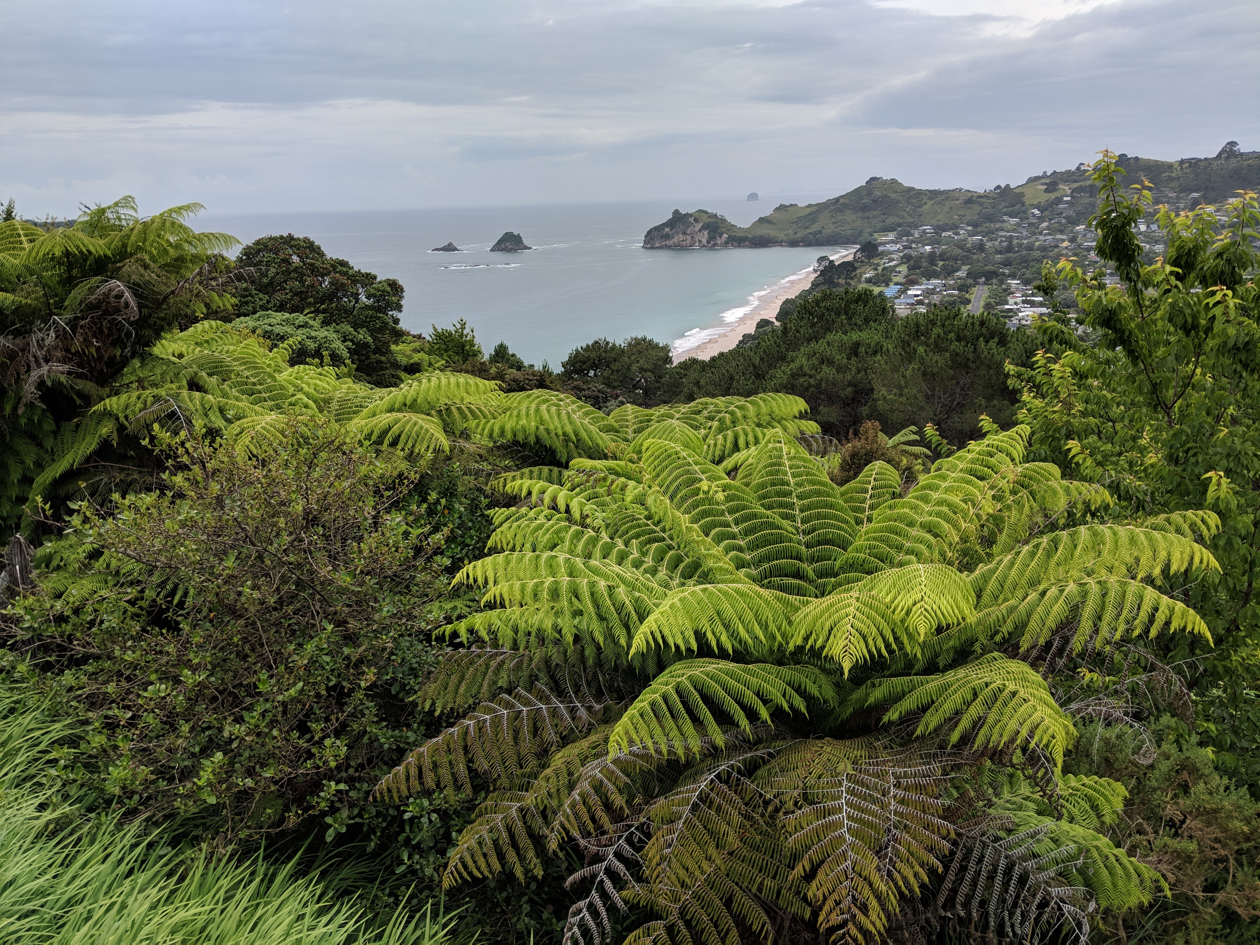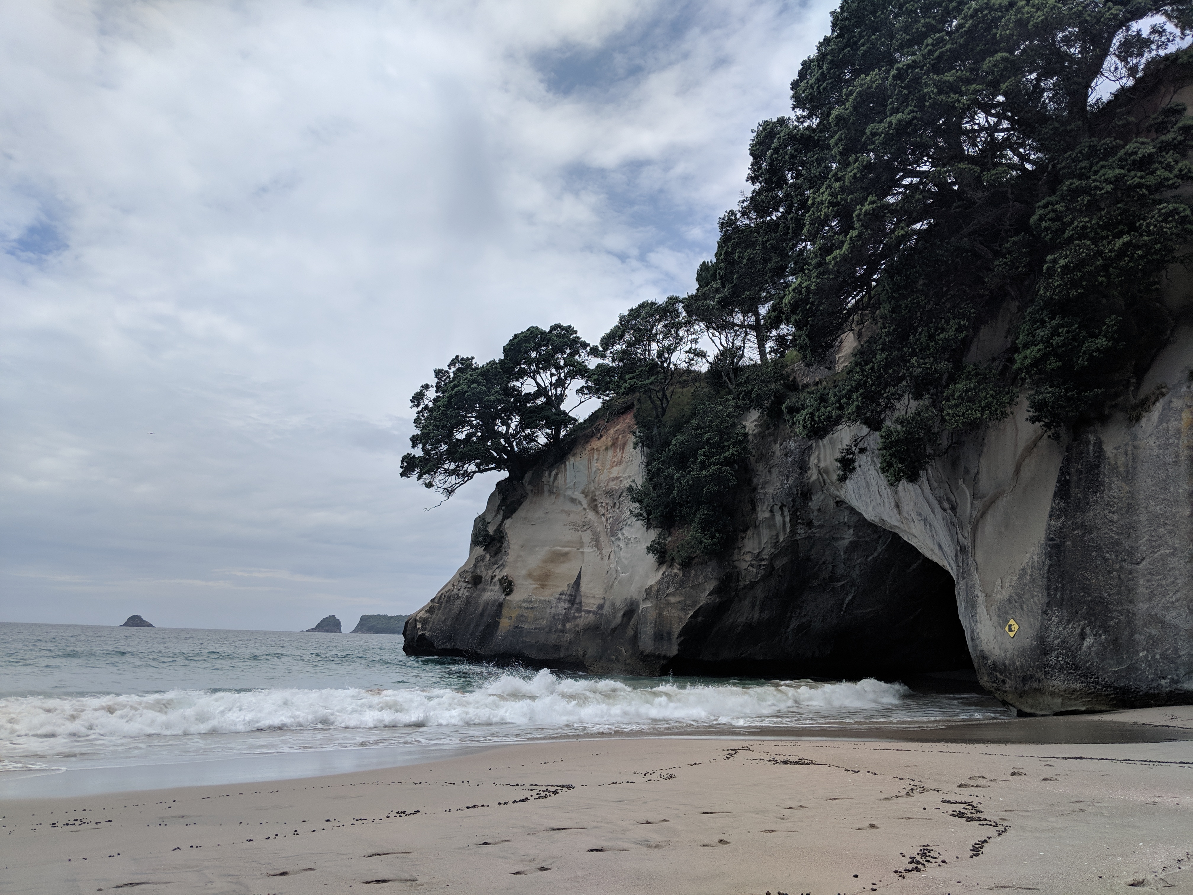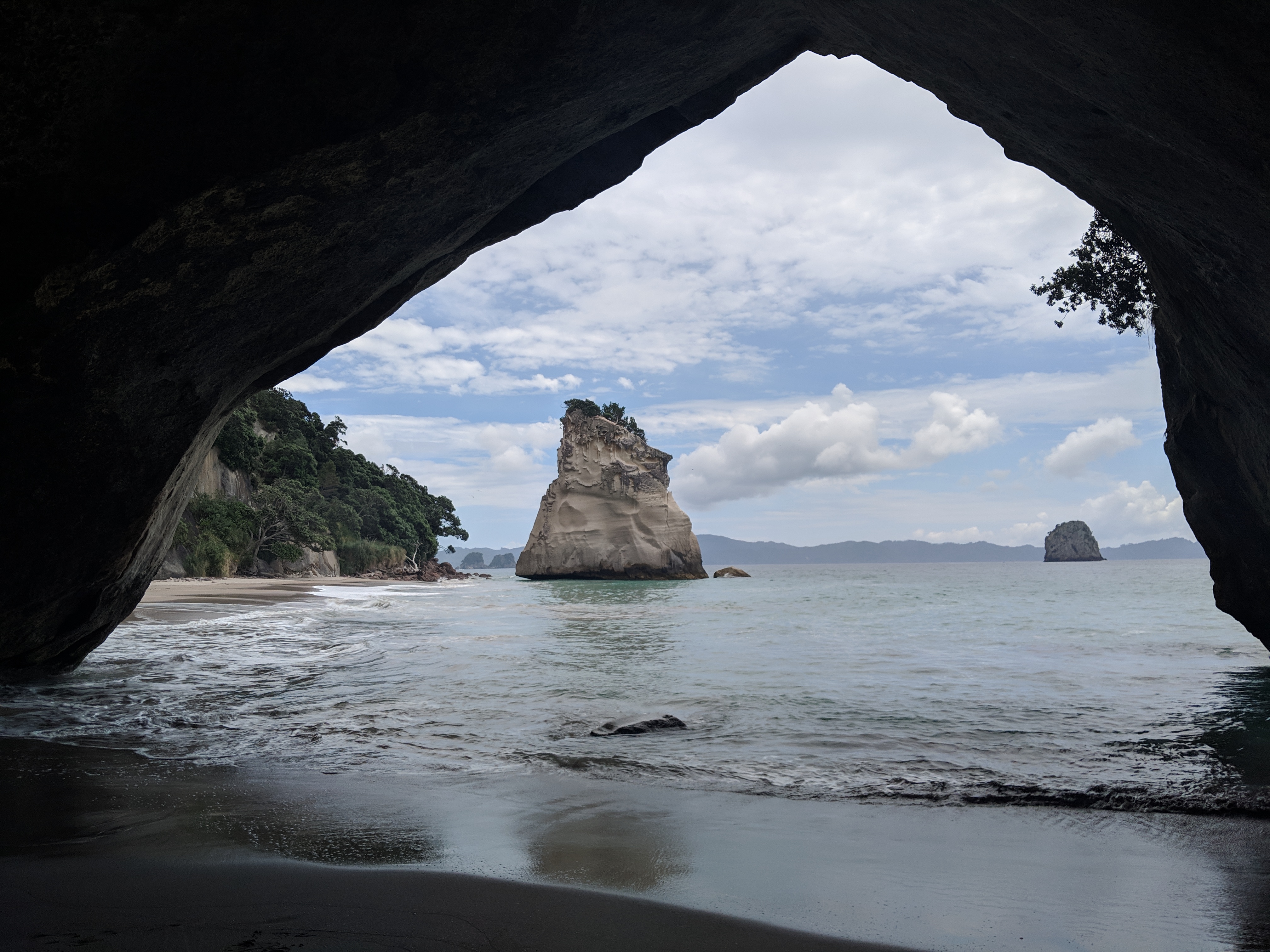 Our first trip with the van was to the Coromandel Peninsula, east of Auckland. It wasn’t long after leaving the city that we found ourselves on two-lane roads in rolling countryside. With a couple of nights in free camping spots, we explored Cathedral Cove on a short hike (pictured below) as well as the famous Hot Water Beach.