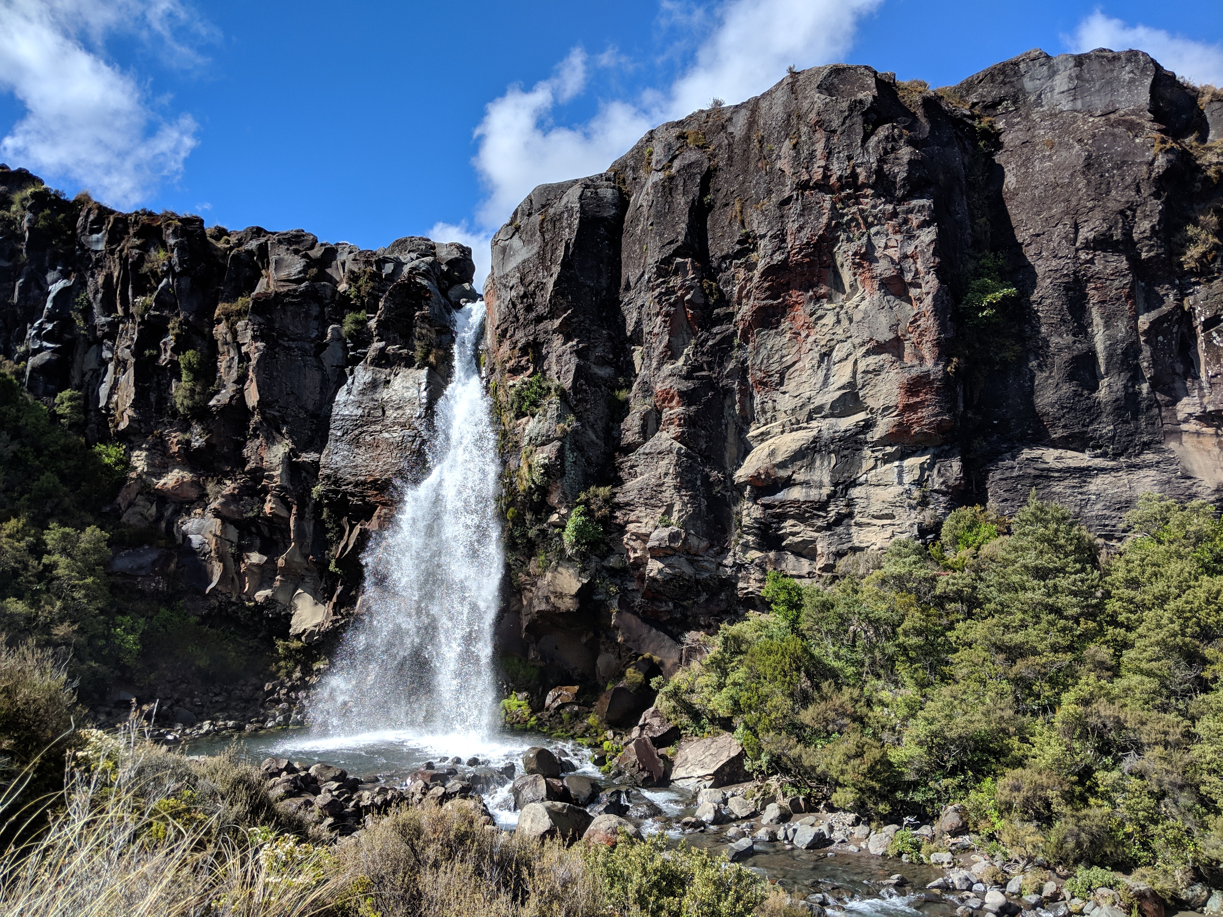 A day tramp (read: “hike”) took us on a seven-hour round-trip adventure through 10½ miles of beech forest, glacial valleys, and volcanic terrain. Our first leg of the track took us past the beautiful Taranaki Falls, which spills water 20 meters over a 15,000 year old lava flow.