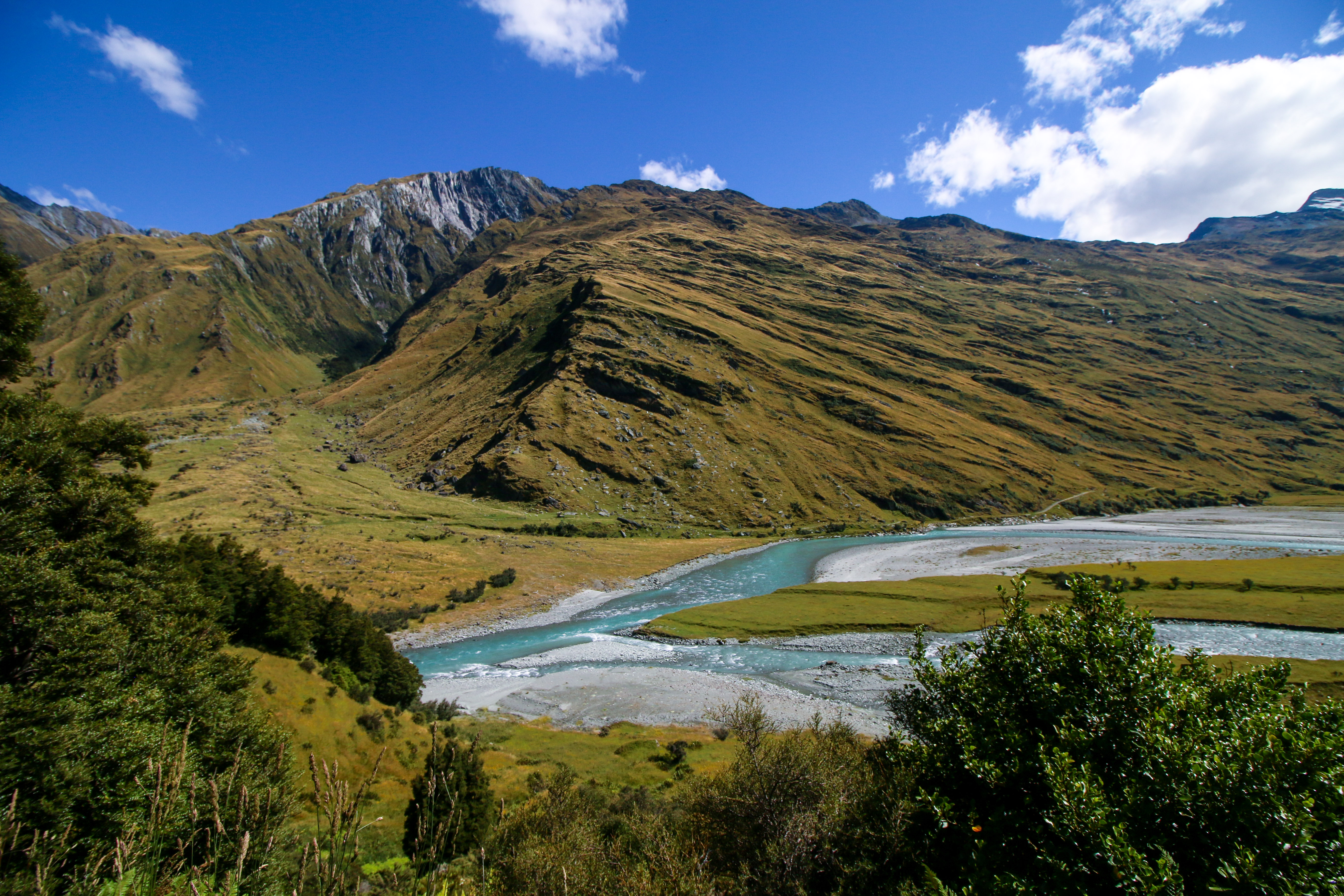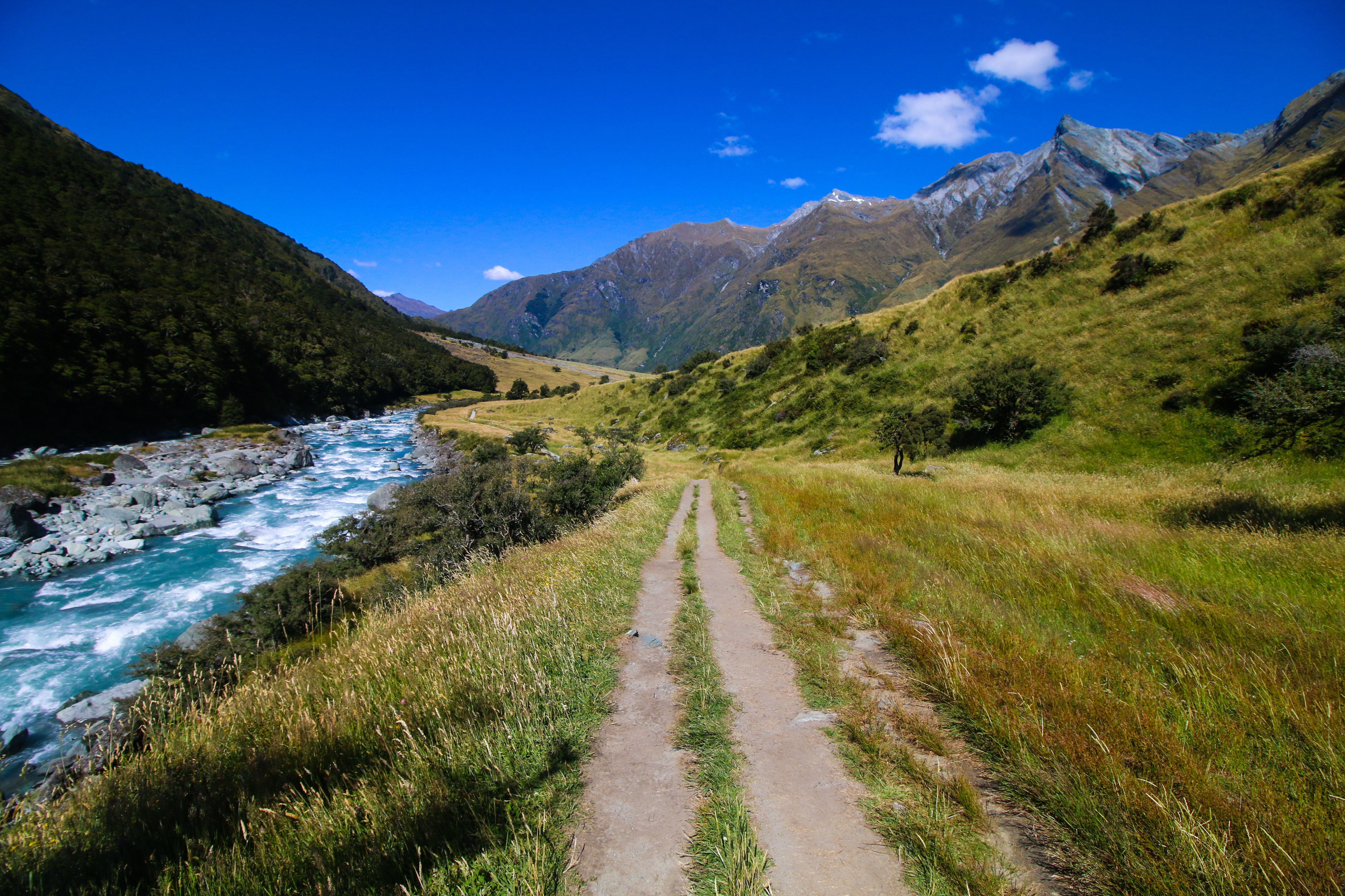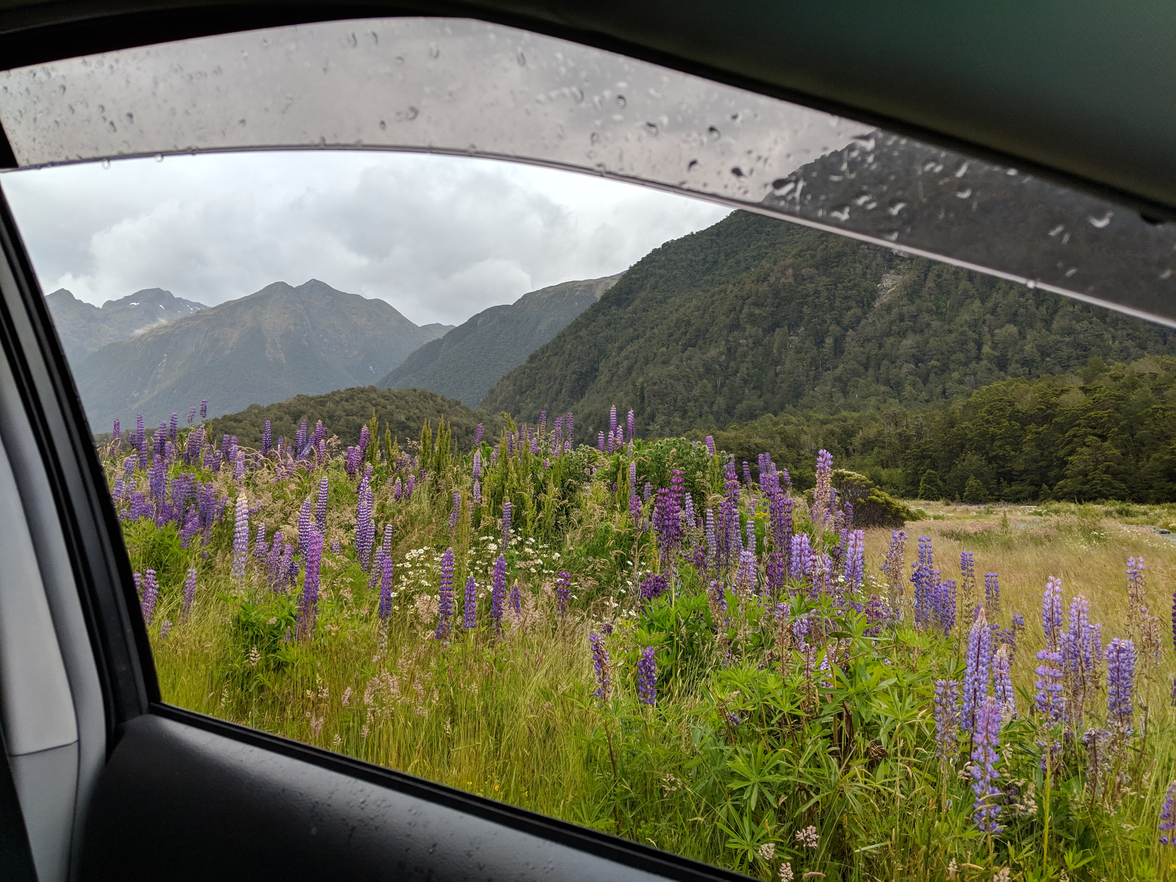 Mt. Aspiring National Park sits near Wanaka, a small but trendy mountain town nestled on its own lake. The Rob Roy Glacier Track trailhead starts an hour and a half away from Wanaka, via a bumpy gravel road with water crossings for our car. The 10-km round-trip track brought us through sheep pasture, along a river, and up into a glacial valley, where fresh rains had formed countless waterfalls coming down from the glacier above.
