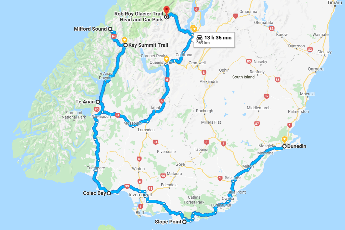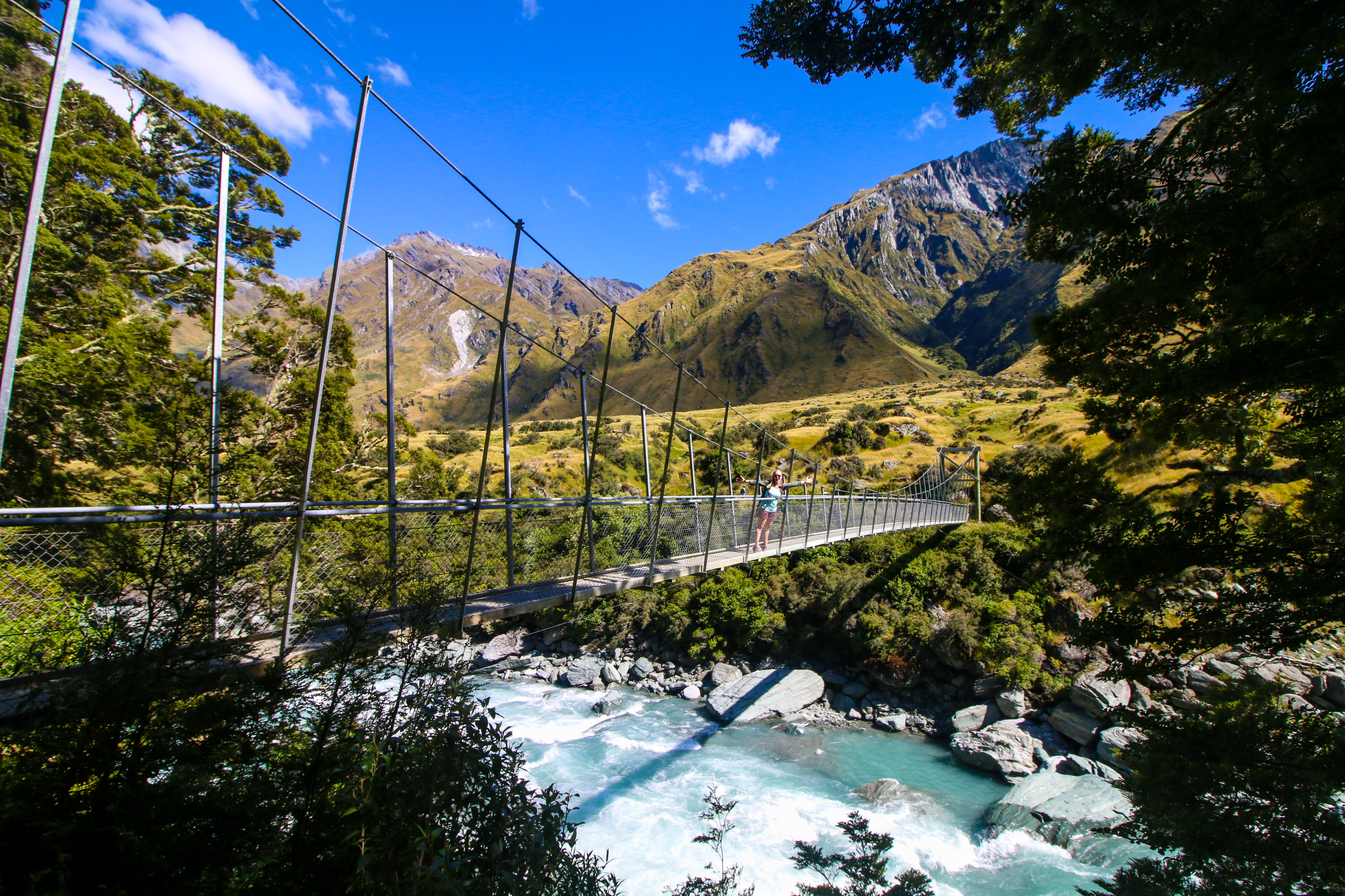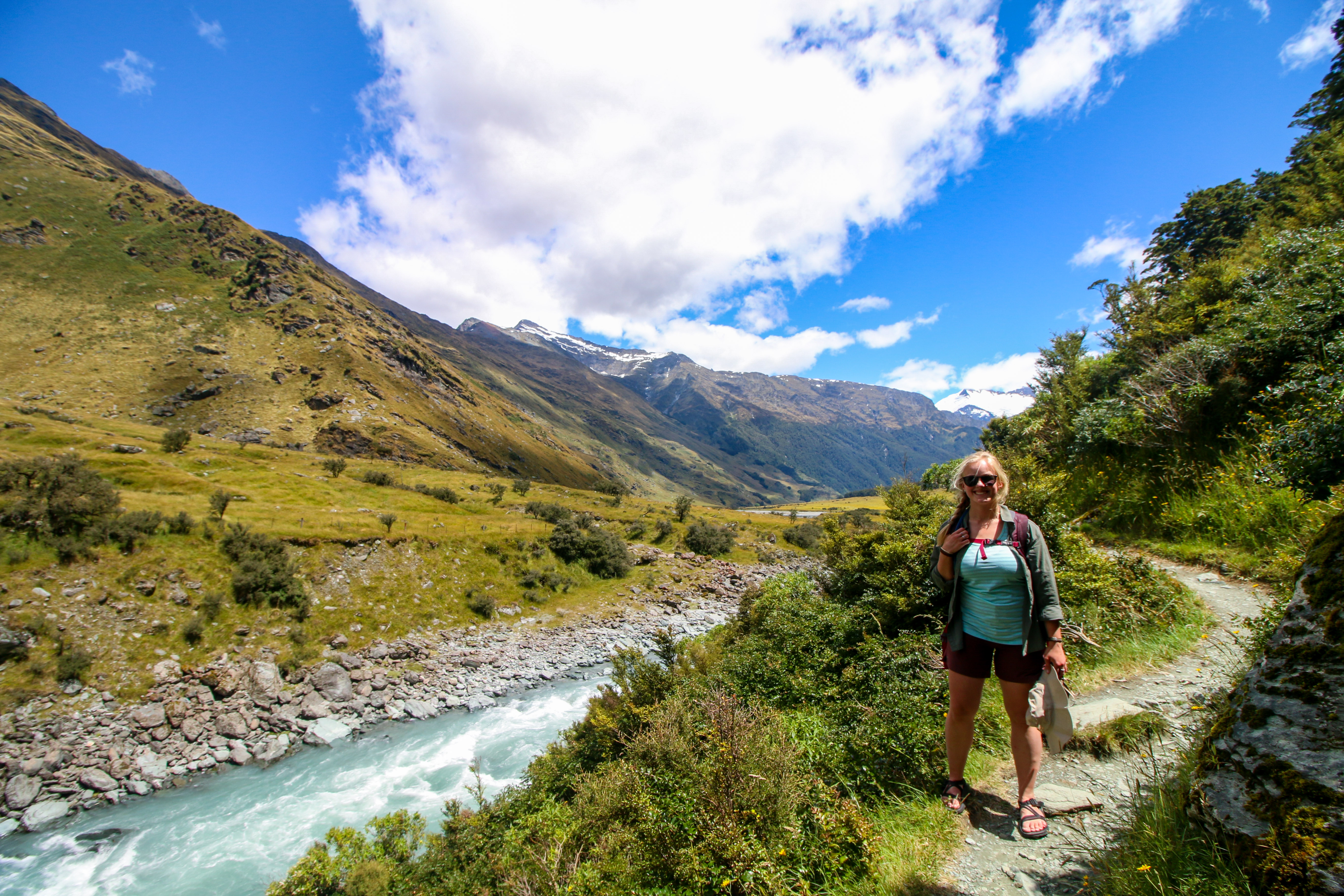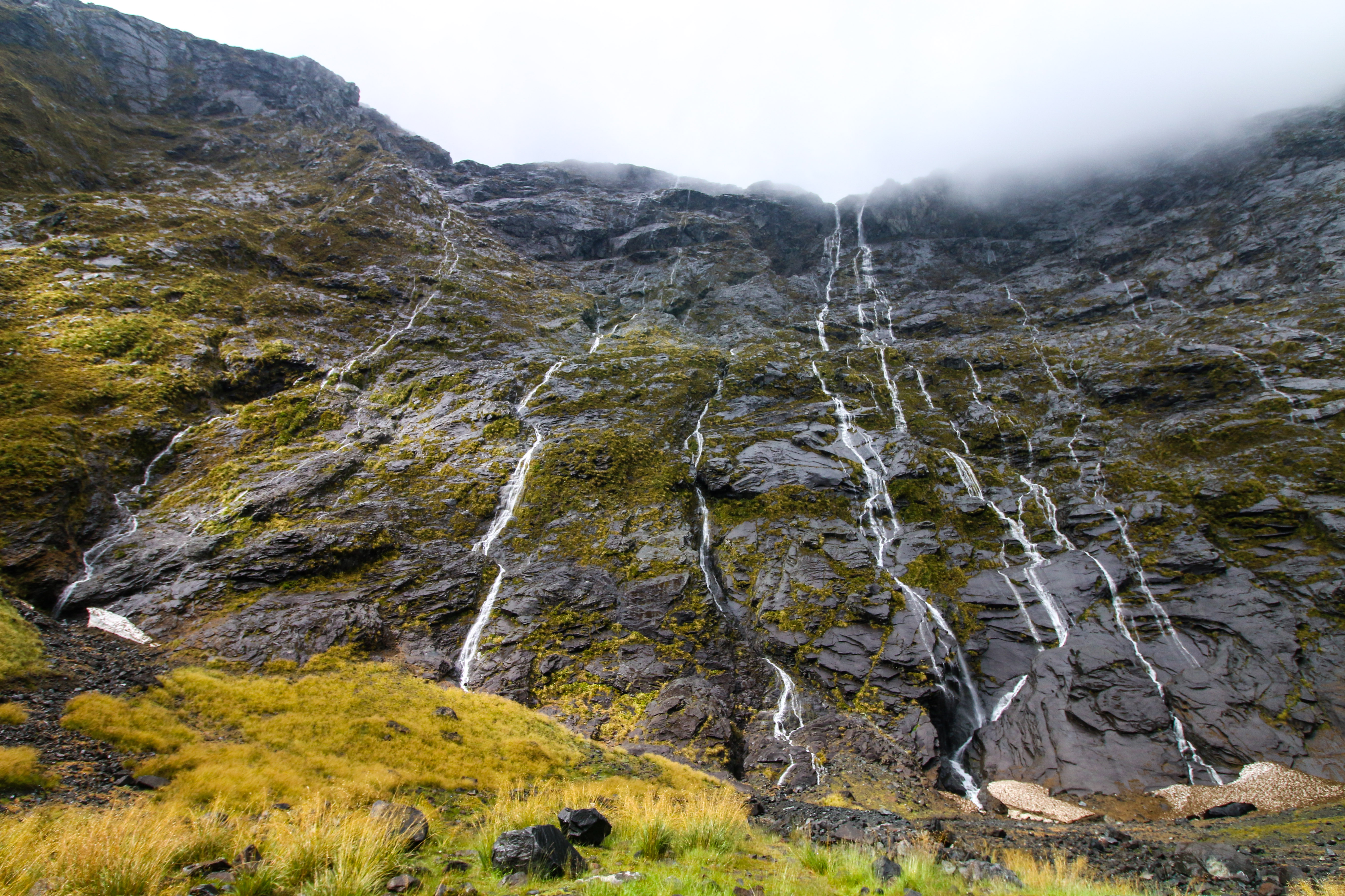 Mt. Aspiring National Park sits near Wanaka, a small but trendy mountain town nestled on its own lake. The Rob Roy Glacier Track trailhead starts an hour and a half away from Wanaka, via a bumpy gravel road with water crossings for our car. The 10-km round-trip track brought us through sheep pasture, along a river, and up into a glacial valley, where fresh rains had formed countless waterfalls coming down from the glacier above.